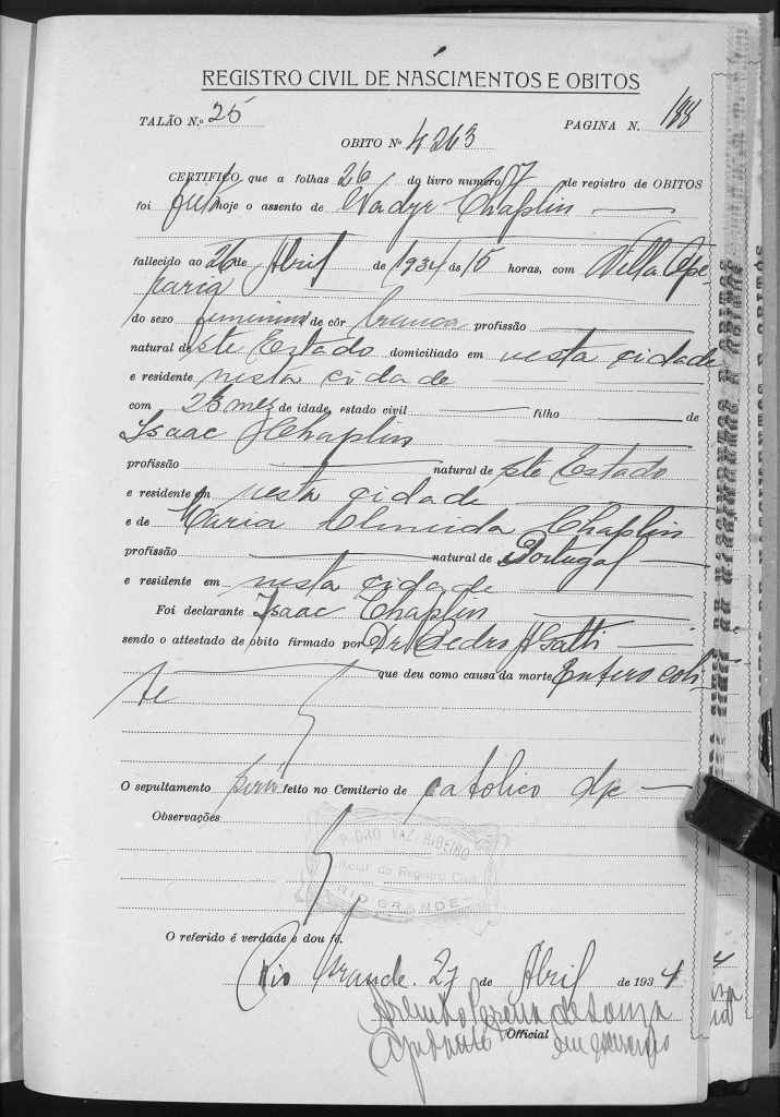 Death of Nadyr Chaplin, on April 26th, 1934.