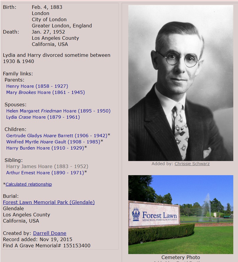 Harry Hoare grave details.