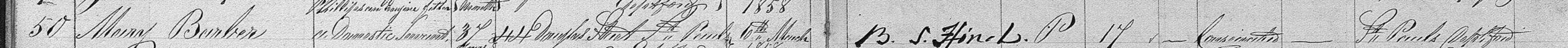 Burial of Mary Esther Barber, 6 March 1858 at Brockley Cemetery (St Paul's Deptford).