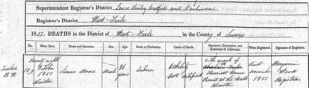 Death certificate of Isaac Moore, 28 October 1851.