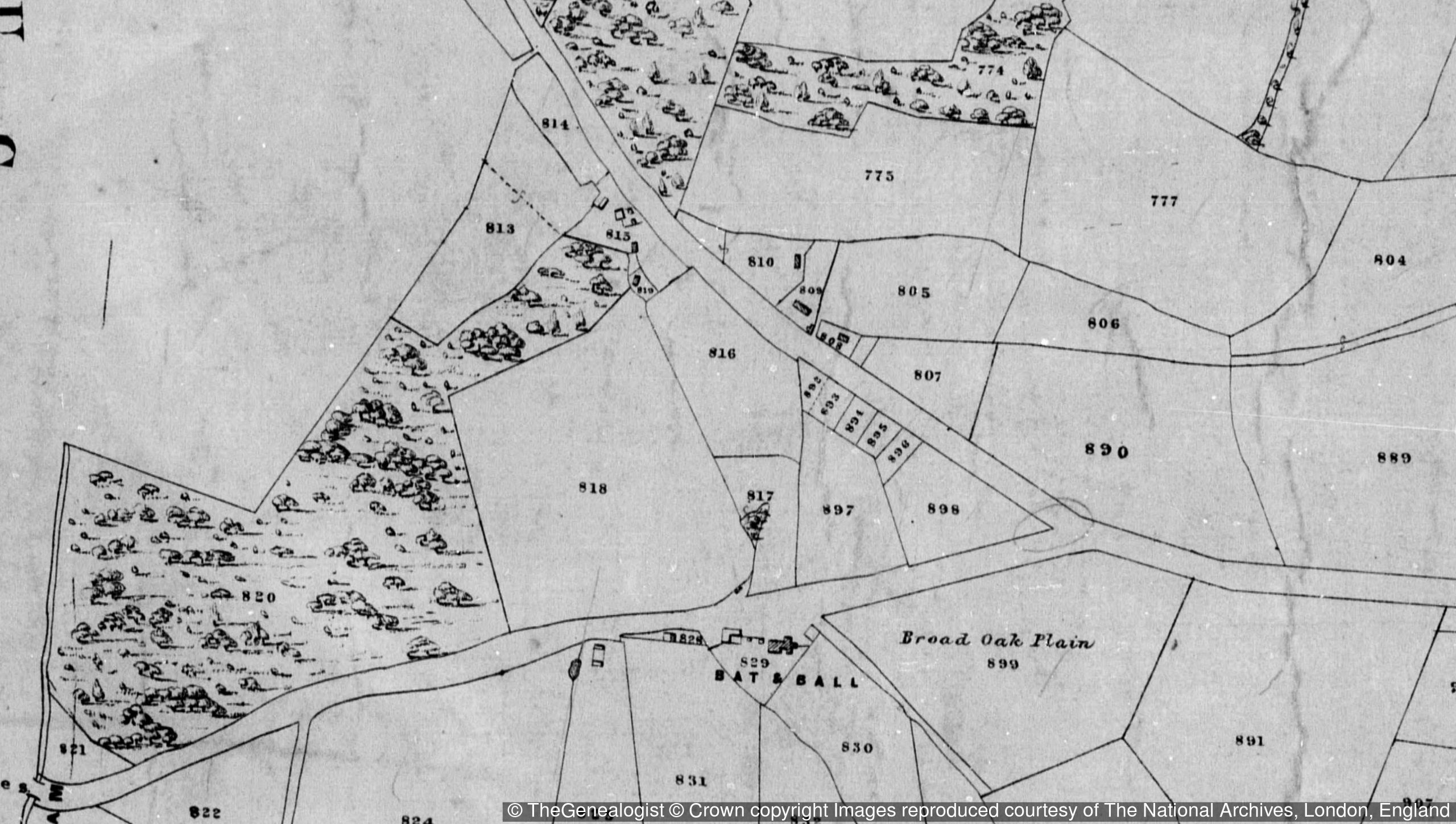1839 tithe map for Chiddingly, East Sussex. Richard Funnell occupied plot 810, a cottage and garden owned by the parish.