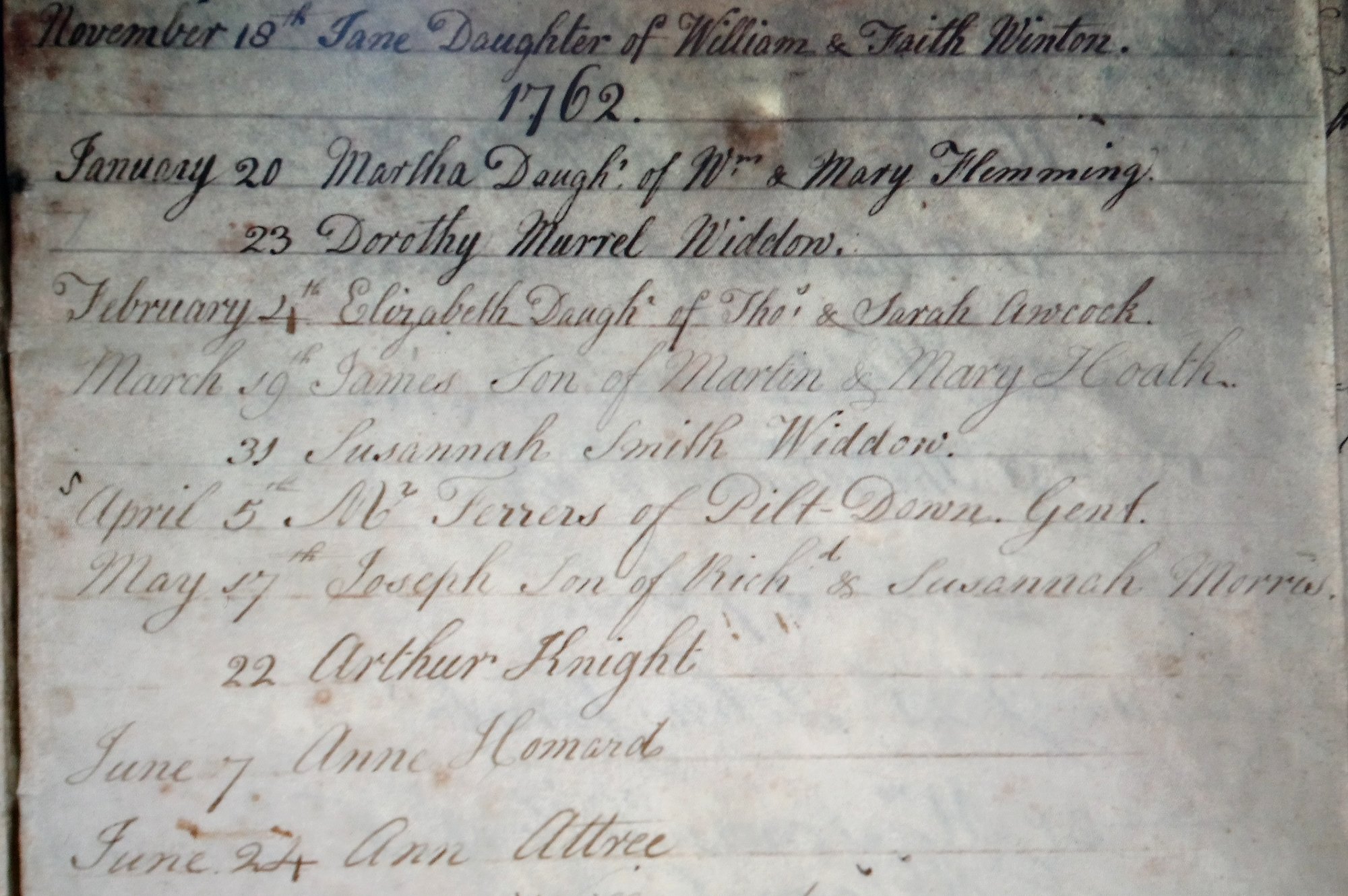 Joseph Morris burial 1762 at Maresfield (original parish register)