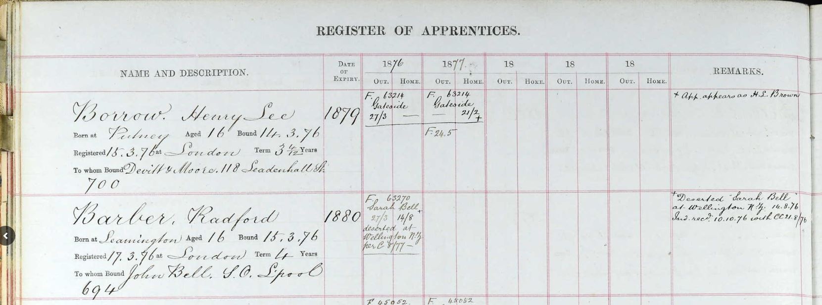 Apprenticeship indenture for Radford Barber, 17 Mar 1876.
