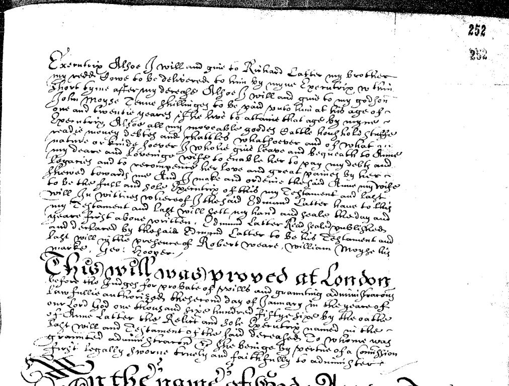 Will of Edmund Latter of Tonbridge, made 20 January 1654 - page 2.