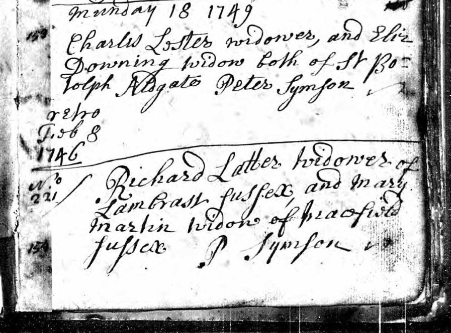 Marriage of Richard Latter and Mary Martin at Fleet Prison, London, 8 Feb 1746.