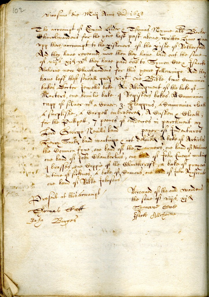 The account of the churchwardens Thomas Nynne alias Barber and Edward Hider 1638 (ESRO: PAR 465-10-3-1-p 102).