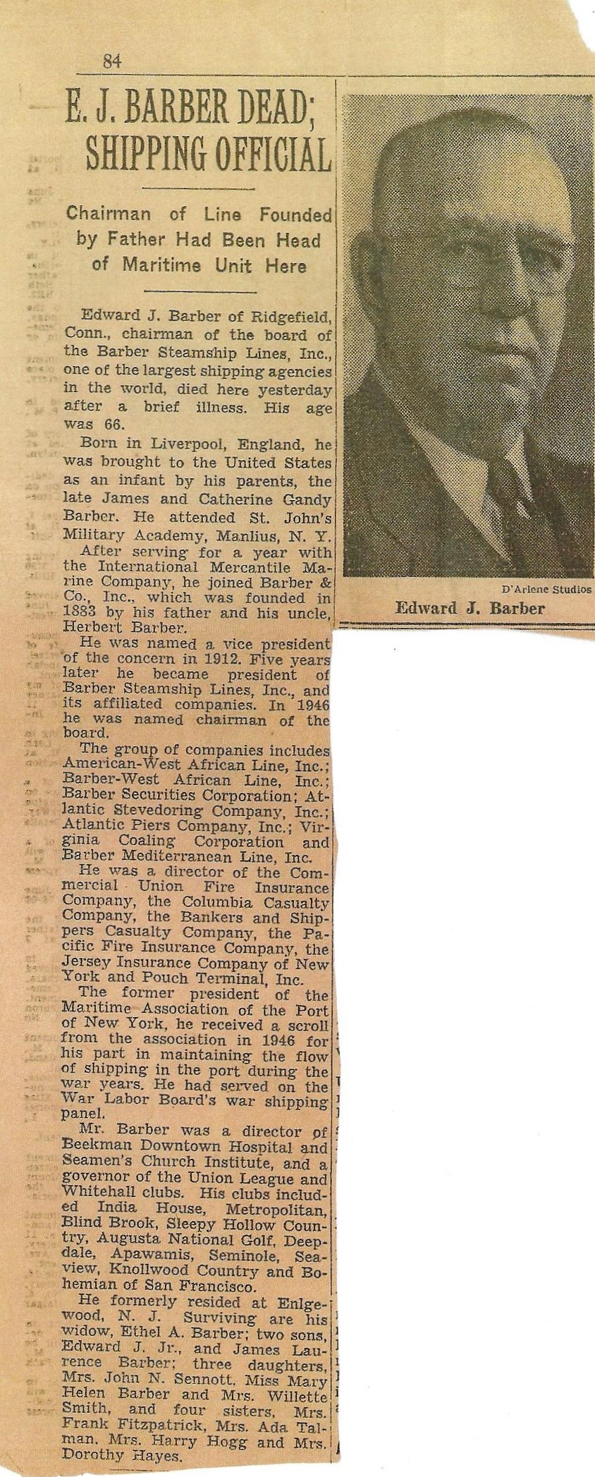 Newspaper Obituary for Edward John Barber (1887-1953). (Courtesy of Wendy Bish-McGrew, 2020)