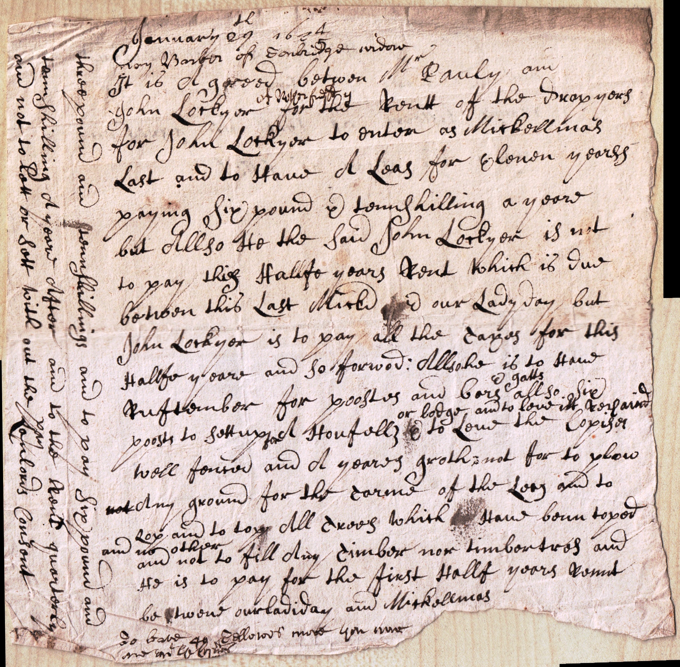 Lease of the Drapers property in Rotherfield to John Lockyer for 11 years (front page); dated 29 January 1684. (Tonbridge Library)