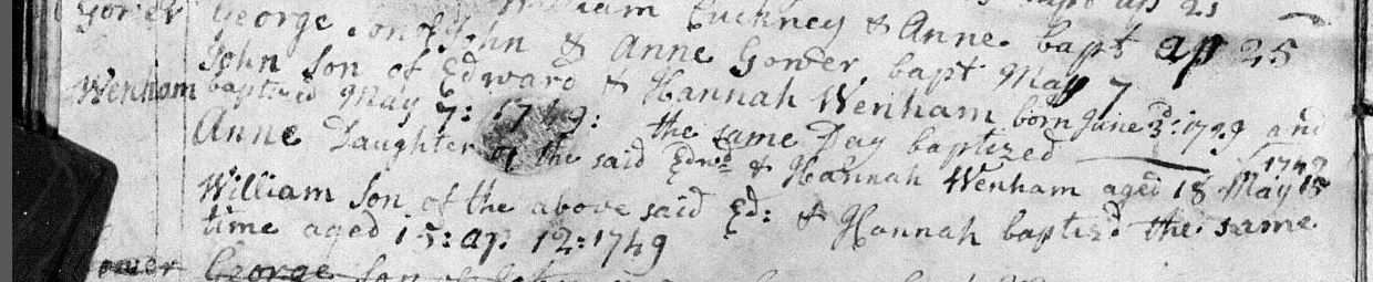 The Wenham adult baptisms at Hellingly, 1749.