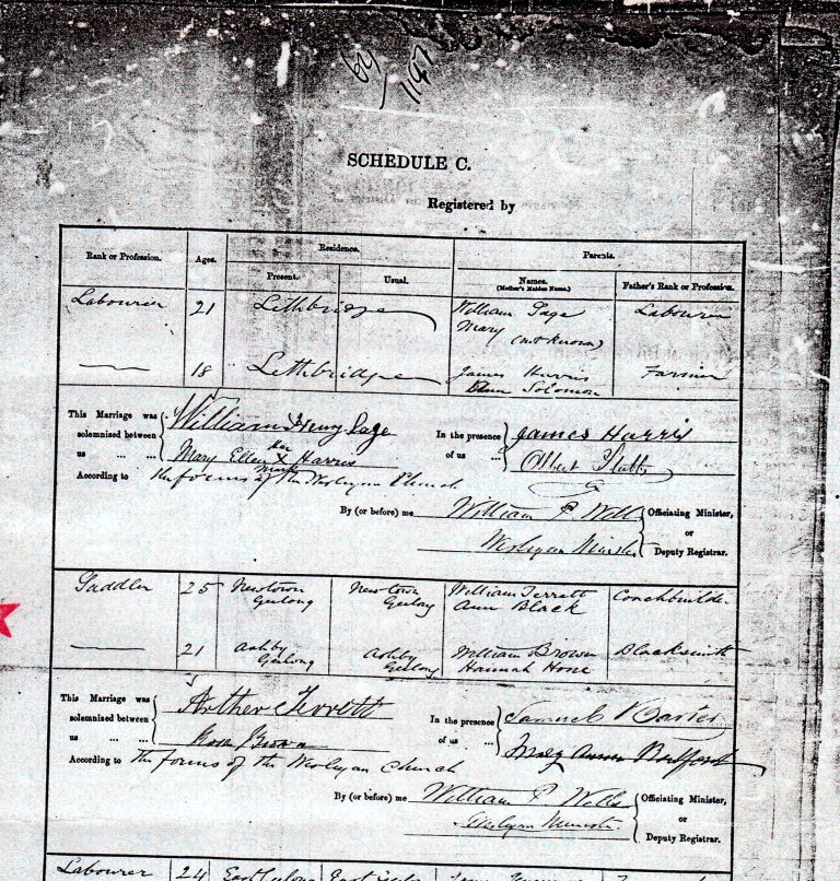 Marriage Certificate of Rosa Brown and Arthur Terrett on 7 October 1863 - Page 2