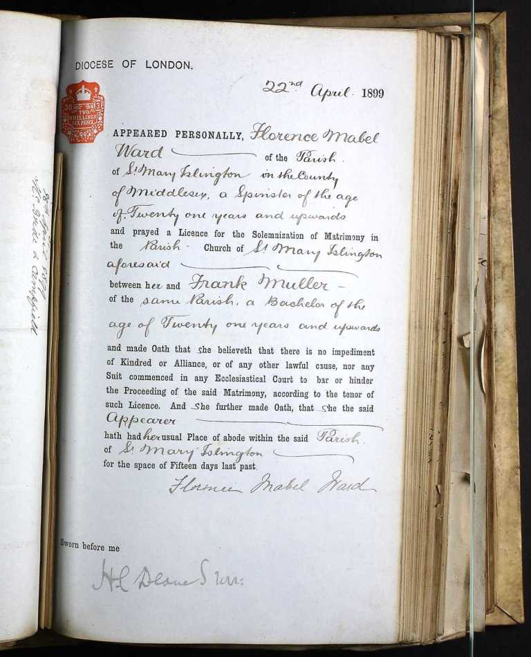 Marriage Allegation - Florence Mabel Ward, 22 April 1899