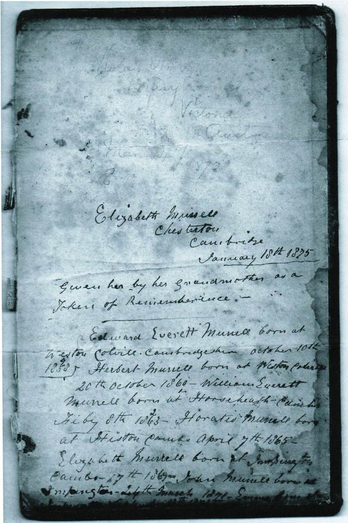 The Everett Family Bible given to Elizabeth Murrell (nee Everett) in 1875 - inside back page
