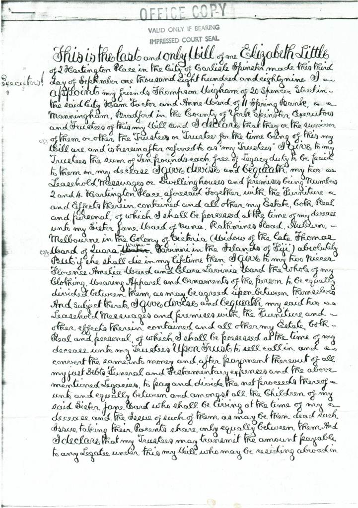 Will of Elizabeth Little, made 3 Sep 1889, proved 24 Aug 1896 - Page 1 of 2