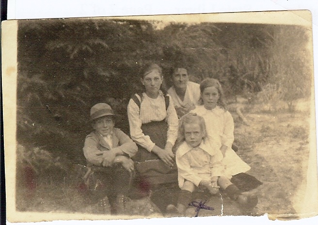 The Wilkins children with their mother Elizabeth Hannah at the back. Mary Ellen Wilkins is marked with an X.