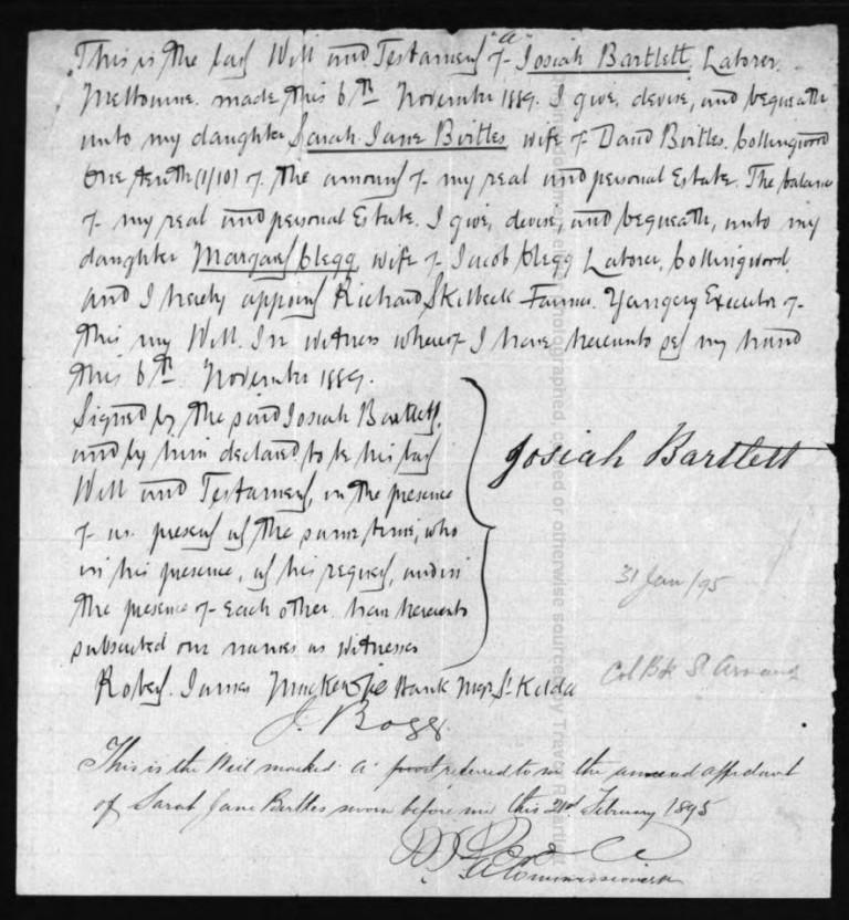 The will of Josiah Bartlett, 6 Nov 1889.