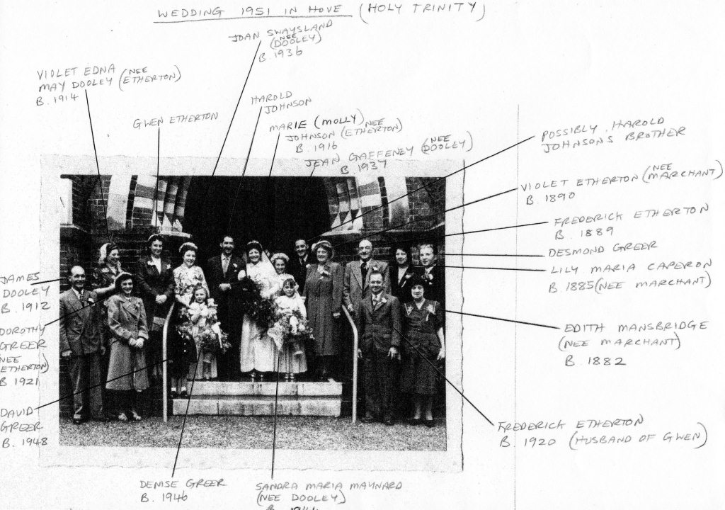Harold Johnson and Marie Etherton marriage 1951 annotated