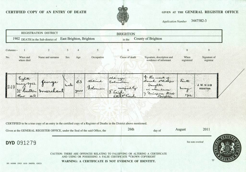 Death Certificate - George Marchant 1902