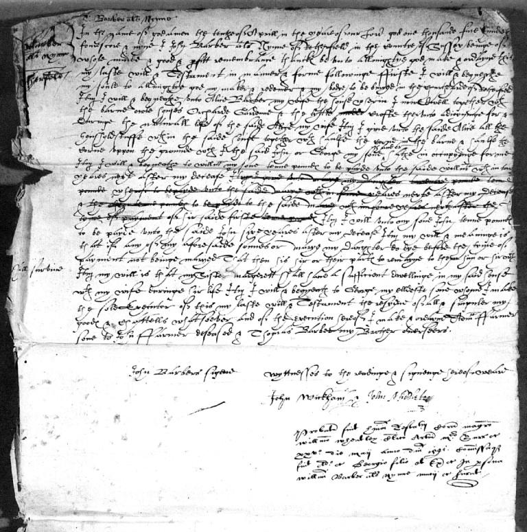 The Will of John Barber alias Nynne, made 10 Apr 1589. He was buried 25 May 1591 at Rotherfield, Sussex.