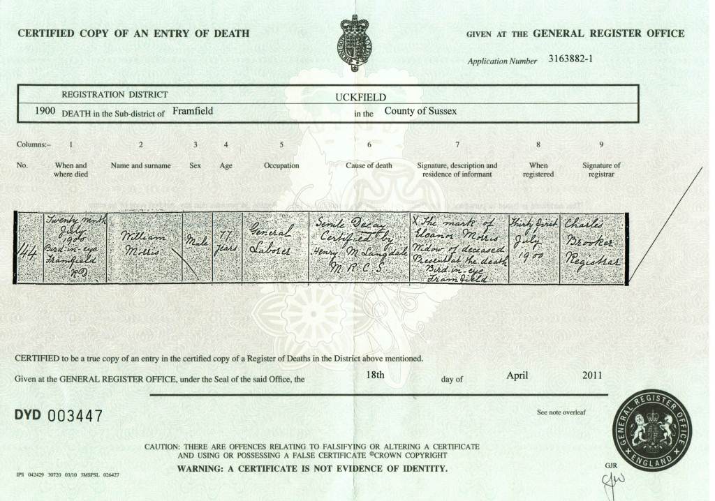 Death Certificate - William Morris 1912