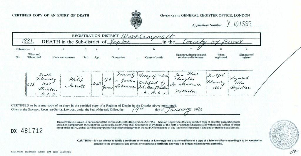 Death Certificate of Philip Murrell 1881