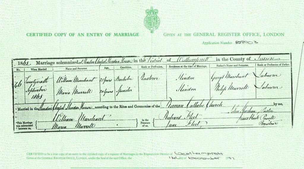 Marriage Certificate of William Marchant and Maria Murrell 1865