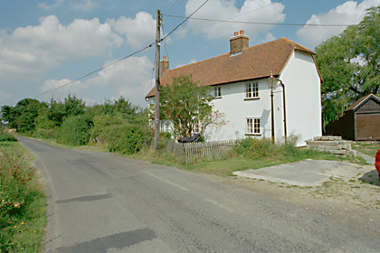 Pair of cottages, formerly single farmhouse. Mid C17 and timber framed and plastered. Of 2 storeys with peg tile roof with gable at west end and half hipped at east. Tall thin crooked gable end stack at west end and off-centre large ridgeline stack, over probable former 'baffle entry'. Front has 2 gabled white boarded C20 enclosed porches and C19 casements with small panes. Interior: 2 late C18 corner cupboards and stopped chamfered timber framing. (https://historicengland.org.uk/listing/the-list/list-entry/1111254.)2 - Anecdote*: There are two churches at Willingale: Willingale Doe and Willingale Spain. They are next to each other. The local legend says that a sister paid for one church to be built, and not to be out done, the other sister built a church next to it. They are called Doe and Spain, supposed to be the married names of the girls.