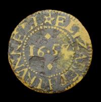 The earliest evidence of Thomas at Henfield is the baptism of his son Thomas on 14 Mar 1660 which gives the best estimate for when he took over the business at Henfield from the widow Elizabeth Trunnell (who issued a farthing token in 1657). While there is no record of his marriage, he and wife Elizabeth had seven children, all making it through to adulthood.