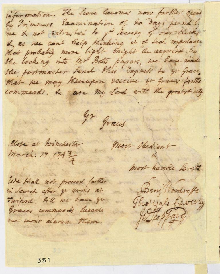 Report concerning activities at the Popish school at Twyford 17 March 1743/44 (TNA SP 36/63/351). Page 2.
