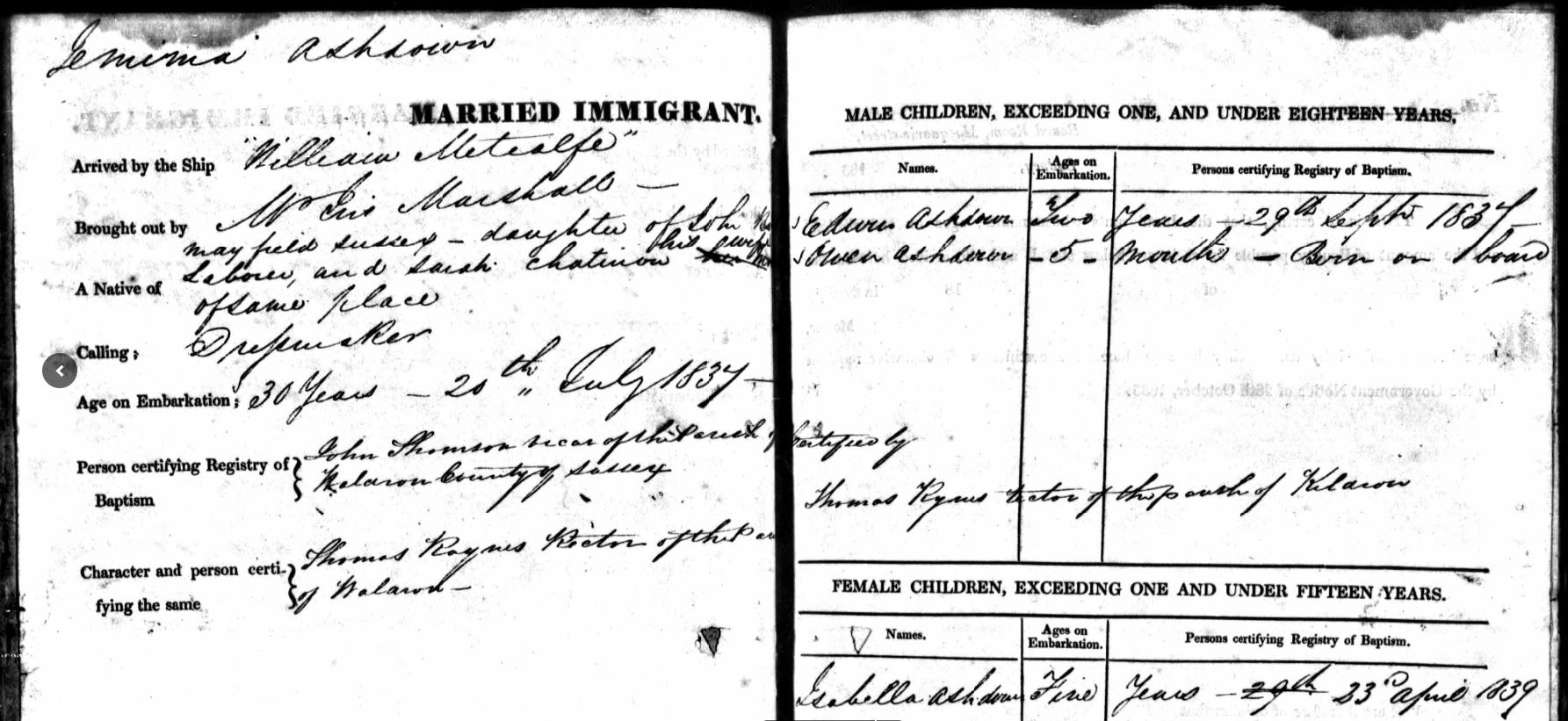 Emmigration - William & Jemima Ashdown 1838 - page 2.