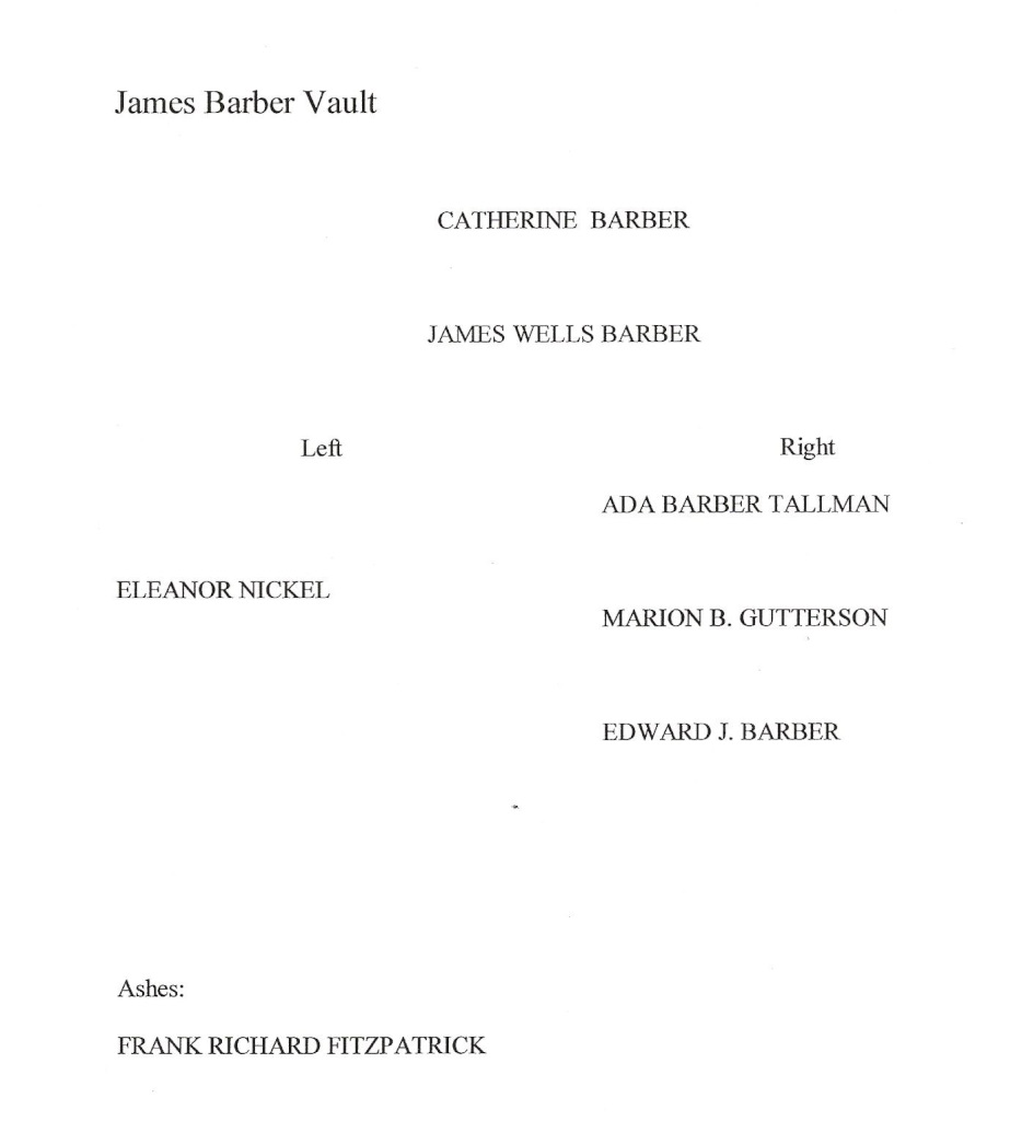 James Wells Barber vault - Document 2. (Courtesy of Wendy Bish-McGrew, 2020)