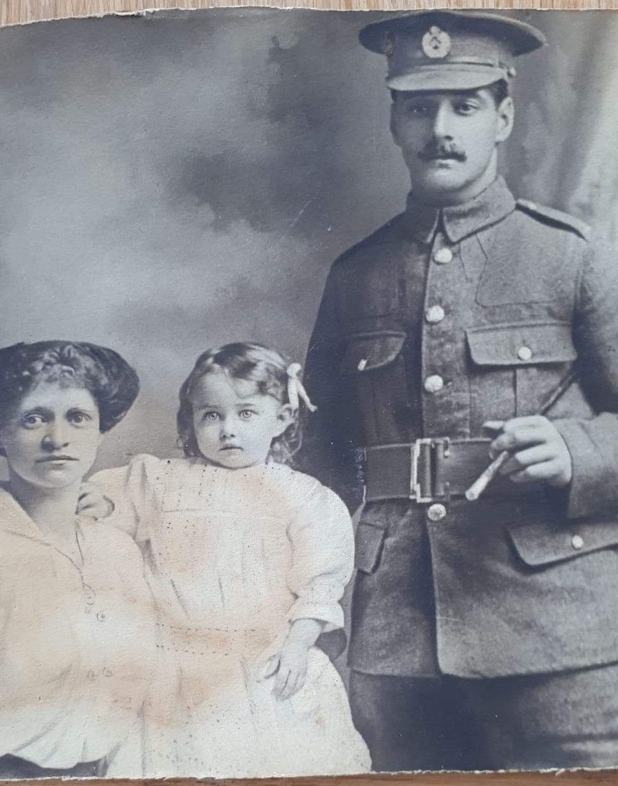 James Herbert Middleton with wife Fortune Coates and daughter Dorothy Middleton c1917. (Photo courtesy of Gemma Jarvis, May 2020)