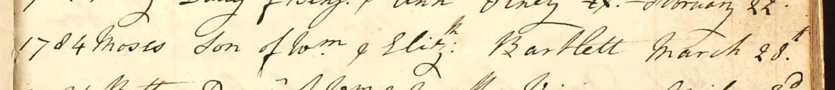 Baptism of Moses Bartlett at Pitney, 28 Mar 1784.