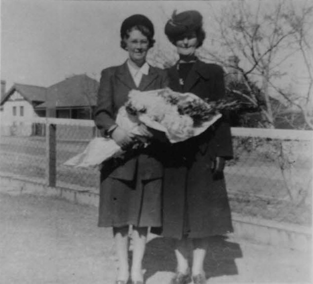 Ada Taylor and her sister Beatrice Batemen on the day Arthur and Ada arrived in Australia on 16 May 1948.