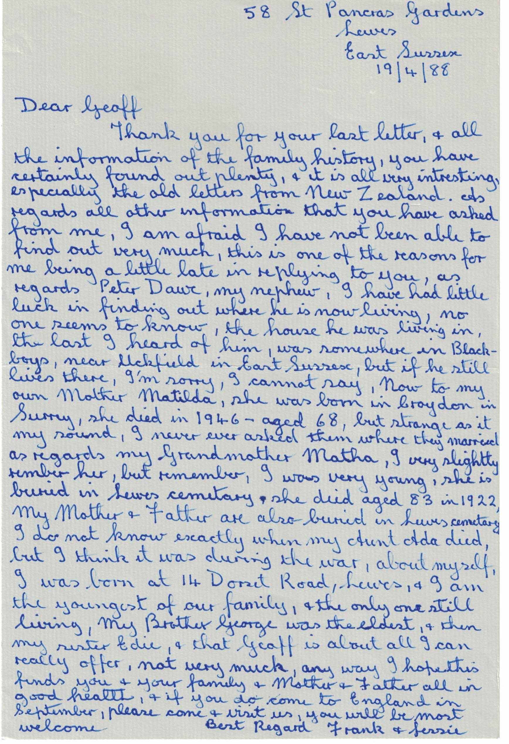 Letter from Frank Richard Morris to Geoffrey Barber, 19 Apr 1988.