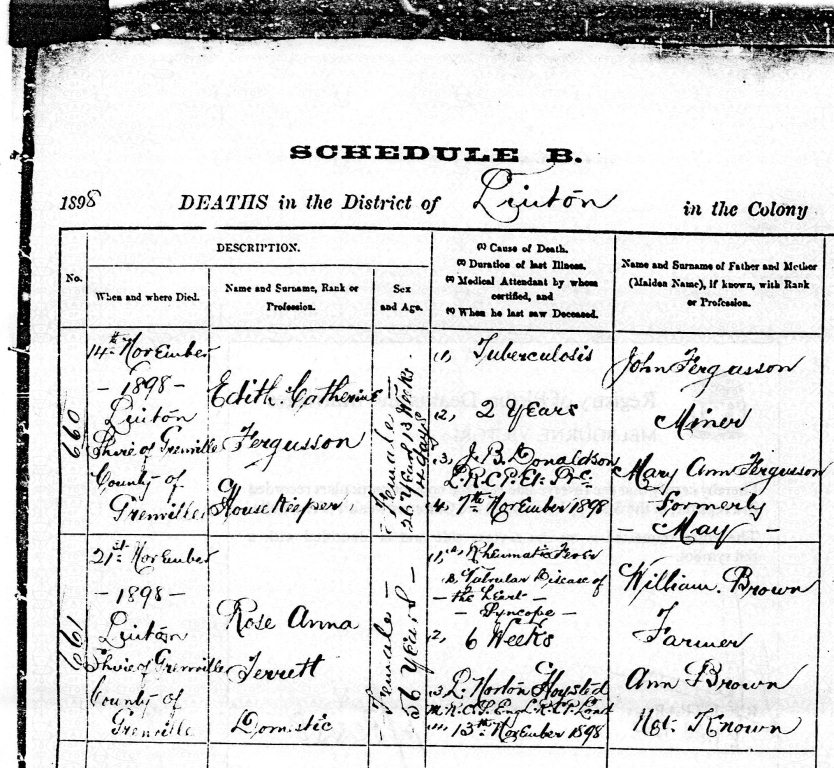 Death Certificate for Rose Hannah Terrett, 21 November 1989 - Page 1
