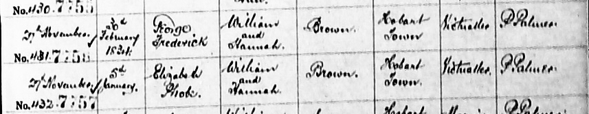 Baptism for Elizabeth Phoebe Brown, 27 November 1837, Hobart Town, Tasmania