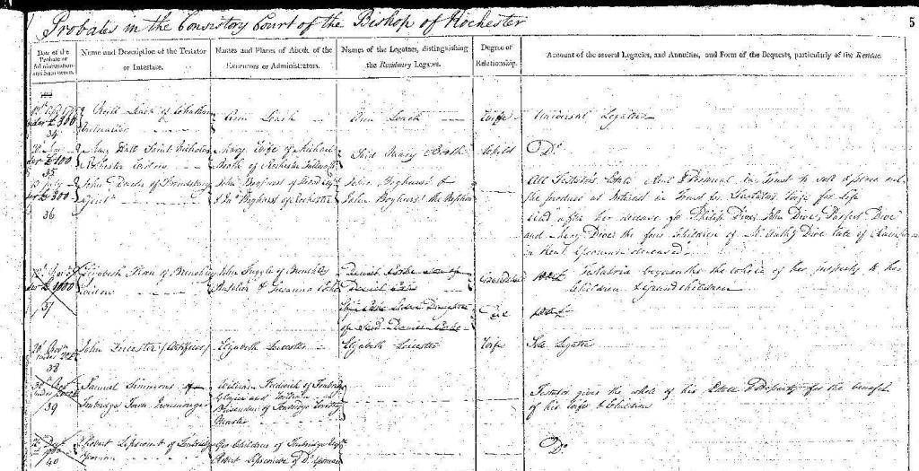 Probate for Robert Lipscombe, Yeoman of Tonbridge, proved 26 Dec 1799