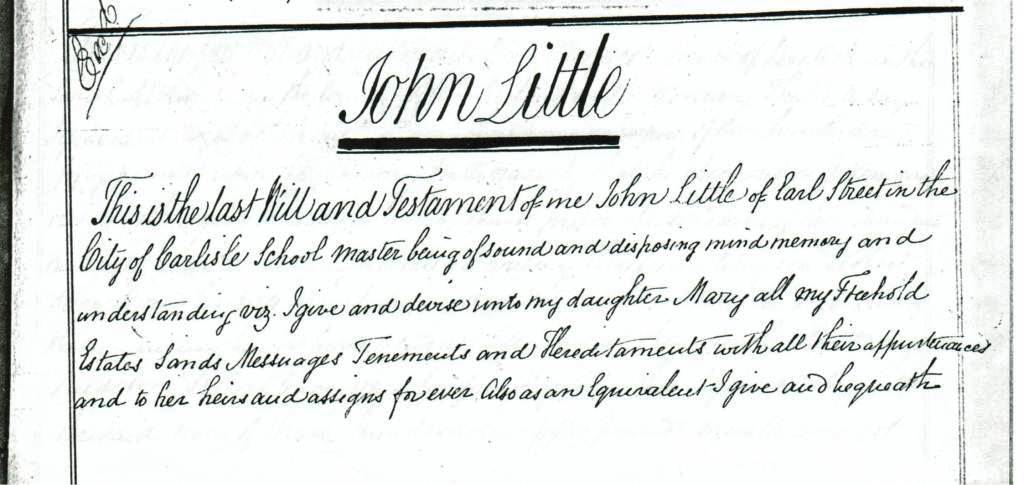 The Will of John Little, made 12 May 1836 and proved 5 February 1849 at Carlisle, Cumberland (Page 1)