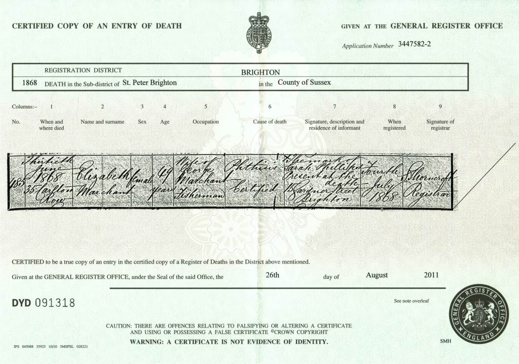 Death Certificate - ElizabethMarchant 1868