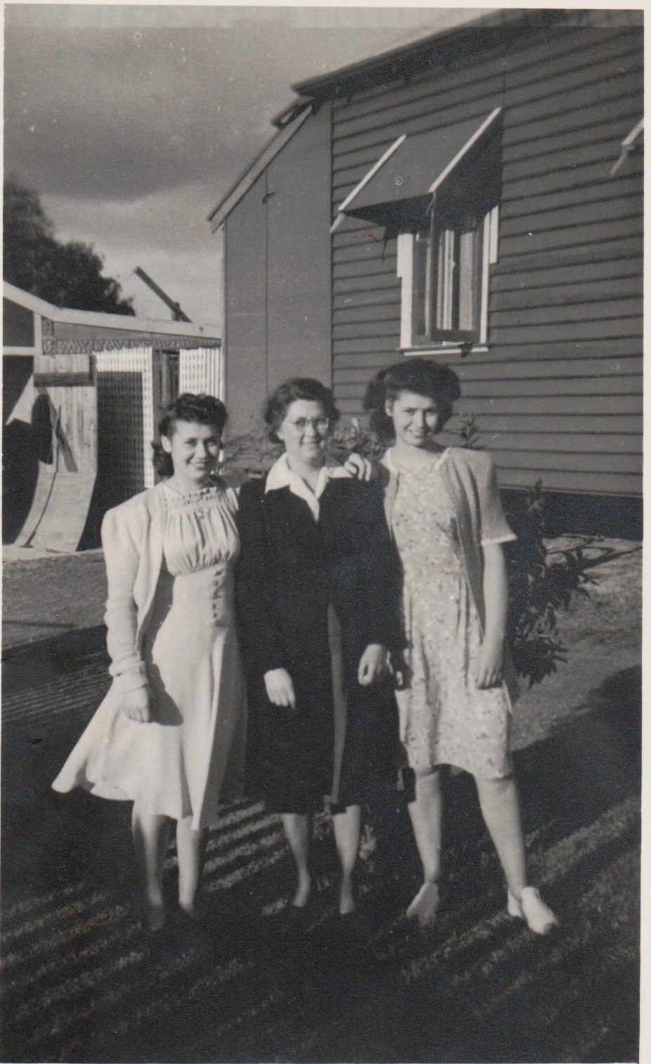Ada Taylor with daughters Joyce Taylor (on the left) and Winifred Taylor (right)