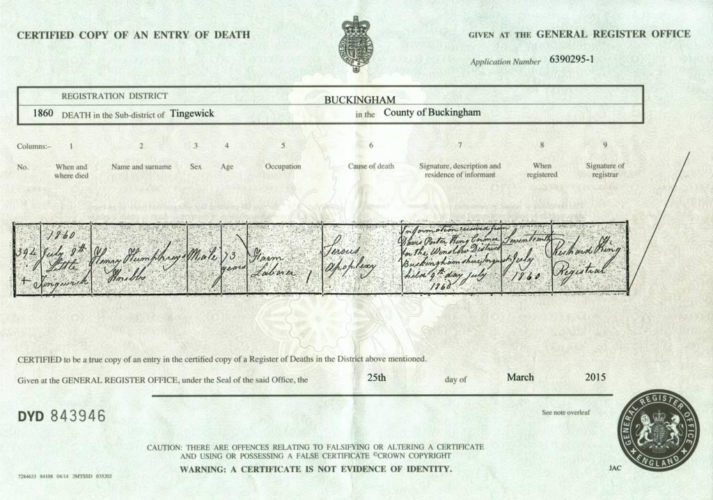 Death certificate for Henry Humphreys Knibbs, 8 July 1860.