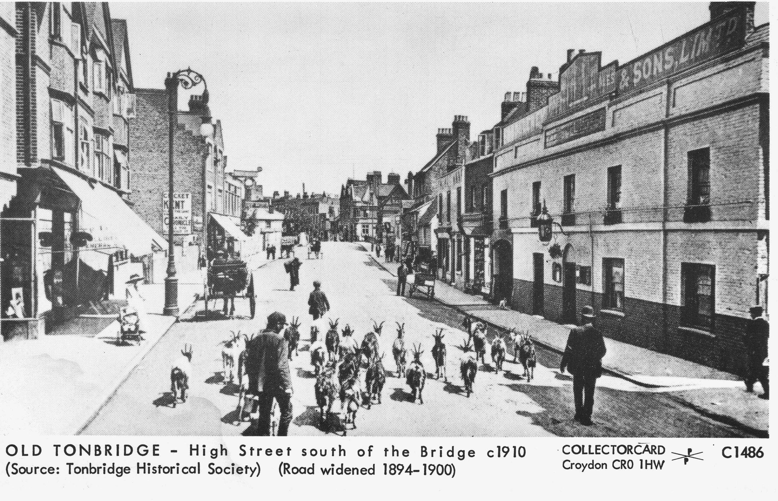 A later photograph from 1910 showing The Bull public house on the right and the newer buildings on the left after the road widening.