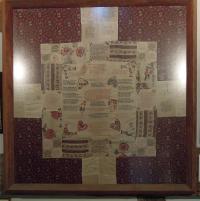 - Anecdote: The fact that Harriet's mother-in-law Mary Gladman (nee Elliot) was also Harriet's first cousin was probably a factor in the survival of the embroidered bed cover and she is probably responsible for it being taken to West Sussex where it ultimately ended up in West Hoathly. The 1851 census records show Mary living with Gideon and the children after the death of Harriet in 1844 and Caroline in 1848, so she must have always been there to help Gideon as required. Mary would have valued the bed cover and probably stored it with her possessions at one point, perhaps after the children grew too big for it (if it indeed was used as a bed cover). Mary subsequently moved to Horsted Keynes to live with her daughter Mary Taylor's family, where she was living at the time of the 1861 census. She died there in 1870, age 91 years. Mary's personal possessions probably went to her daughter Mary Taylor who died in 1883 in a carriage accident at the age of 70 years (along with her husband's sister). Alternatively, if the embroidery was kept by Gideon as a reminder of his first wife, then his personal effects would have probably been left to his last (third) wife Mary Ann who died in 1918 at the Sackville College alms-house at East Grinstead, and whose executor was Mary Taylor's grandson, Charles Taylor of Horsted Keynes, according to probate records. So either way, there is a good chance that the embroidery ended up with the Taylor family in Horsted Keynes.