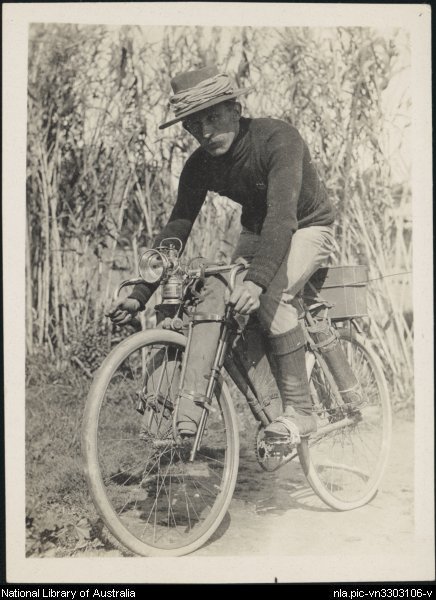 Birtles disembarked at Fremantle, Western Australia, and on 26 December 1905 left to cycle to Melbourne, an achievement which attracted widespread attention. After brief employment as a lithographic artist, in 1907-08 he cycled to Sydney and then, via Brisbane, Normanton, Darwin, Alice Springs and Adelaide back to Sydney, where he was thereafter based. In 1909 he published the story of his feat, Lonely Lands, which he illustrated with his own photographs. That year he set a new cycling record for the Fremantle to Sydney continental crossing, then in 1910-11 rode around Australia. In 1911 he was accompanied from Sydney to Darwin by R. Primmer, cameraman for the Gaumont Co.: Across Australia was released next year. Birtles had continued on to Broome and Perth, then lowered his record by riding from Fremantle to Sydney in thirty-one days. By 1912 he had cycled around Australia twice and had crossed the continent seven times.